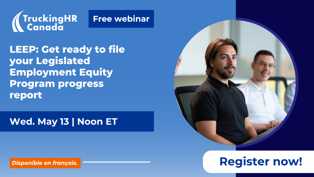 Under the Legislated Employment Equity Program (LEEP), federally regulated employers with 100 or more employees must submit workforce data and a narrative report to the Labour Program each year by June 1. Join the THRC team as we walk you through tools, resources, and newly available eLearning that will help you complete reporting requirements for LEEP, including how to report various types of truck driver pay.