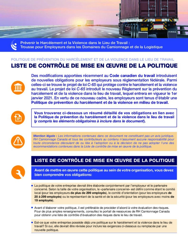 Norme professionnelle nationale – Chauffeur de camion commercial