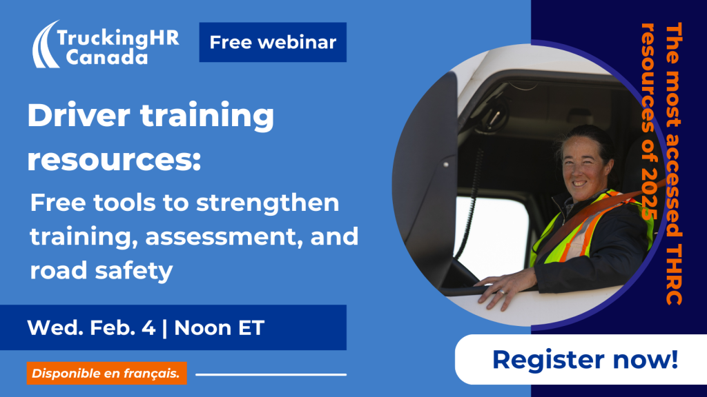 OTTAWA, ON (January 5, 2026) — Trucking HR Canada has kicked off 2026 with a new travelling Workforce Bootcamp series designed to deliver regional labour market intelligence, practical insights, fast-paced learning, real-world examples and peer discussion directly to the trucking and logistics sector. REGISTER Our first stop is Calgary — February 19, 2026 (10 am […]