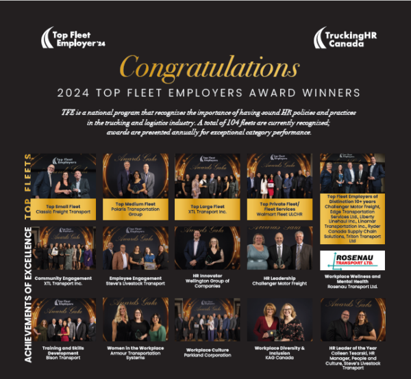 Top Fleet Employers that meet the highest standards can also earn special recognition with annual Achievement of Excellence Awards. Recipients are announced in mid-October each year at the TFE Awards Gala. All Top Fleet Employers are considered as contenders for awards.